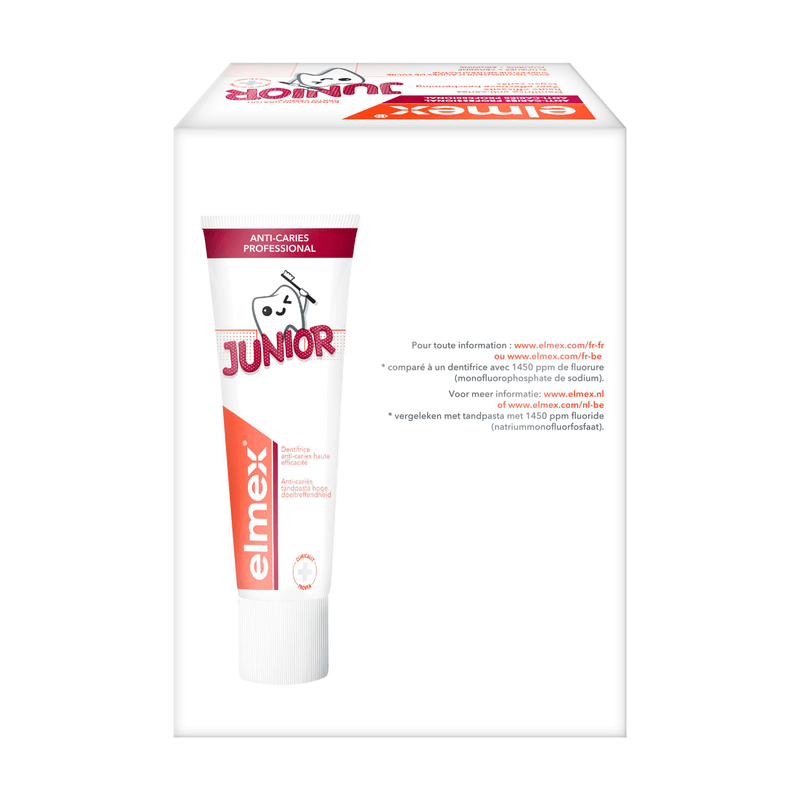 Protégez les dents de vos patients âgés de 6 à 12 ans des acides de sucre grâce au dentifrice elmex® Anti-caries Professional Junior. Ce dentifrice fluoré avec Prébiotique Neutraliseur d’Acides de sucre qui neutralise les acides de sucre présents dans la plaque dentaire avant qu’ils n’attaquent les dents. Ce dentifrice anti-caries protège contre les caries et les caries radiculaires, c’est pourquoi il est important de l’utiliser.